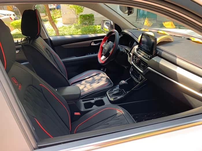 座椅套上了黑红点缀的坐套是不是很好搭配感