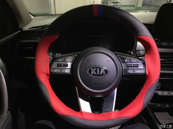 自己手缝的方向盘套,黑色的内饰点缀红绝配