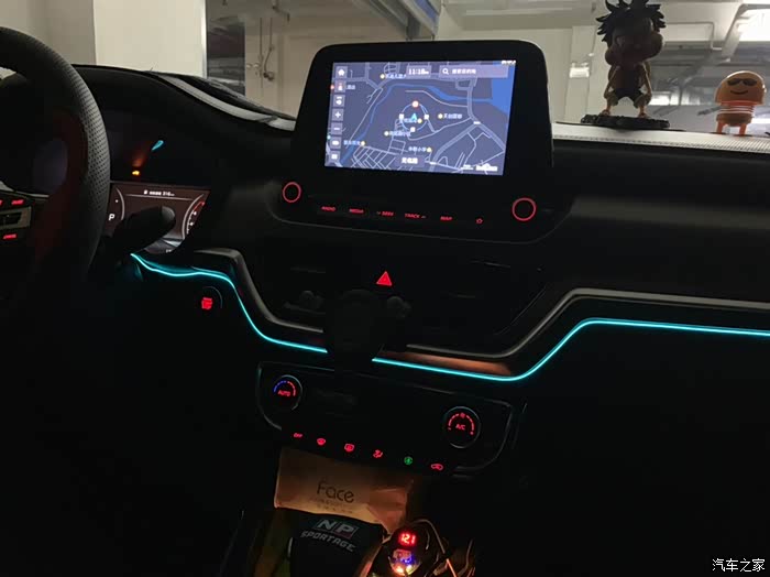 加装了一条冷光条,夜晚开车,增加一点点缀。