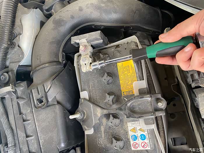 先把螺丝扭下来电瓶从来没打开过说实话真的挺紧的!