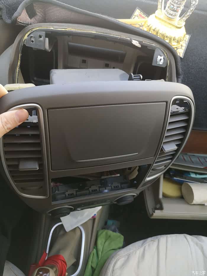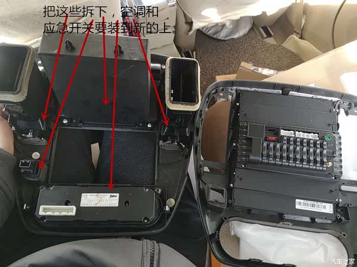 最麻烦的是,自己拆下原来配件,本以为很简单,难的是空调开关和通风口上的卡子不好弄,慢慢研究下找到了窍门。
