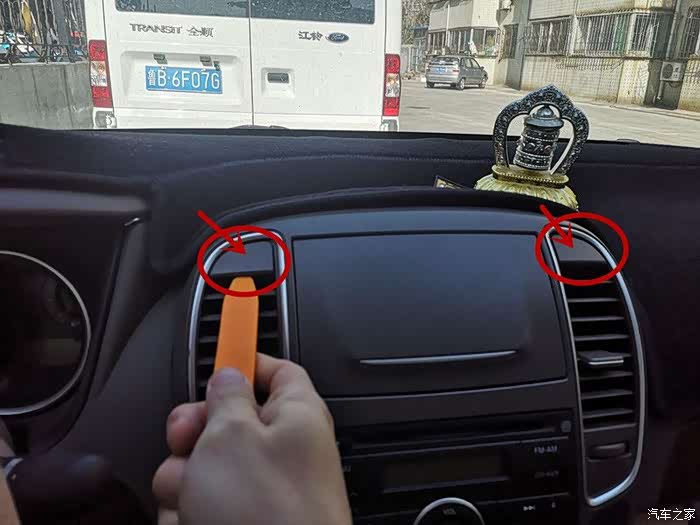用撬板把原车的面板撬开。注意:力度不能太大,不要把原车中控压坏,影响美观