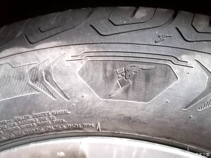 用了三年的安乘二代轮胎,外表显得有点雍肿,灯光有限拍得有些模糊。