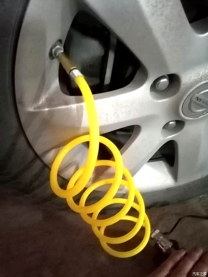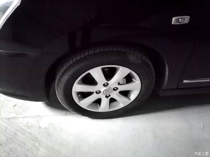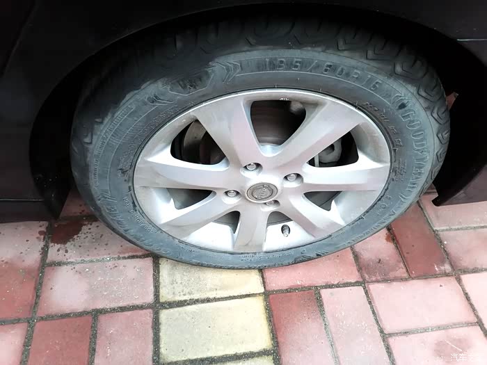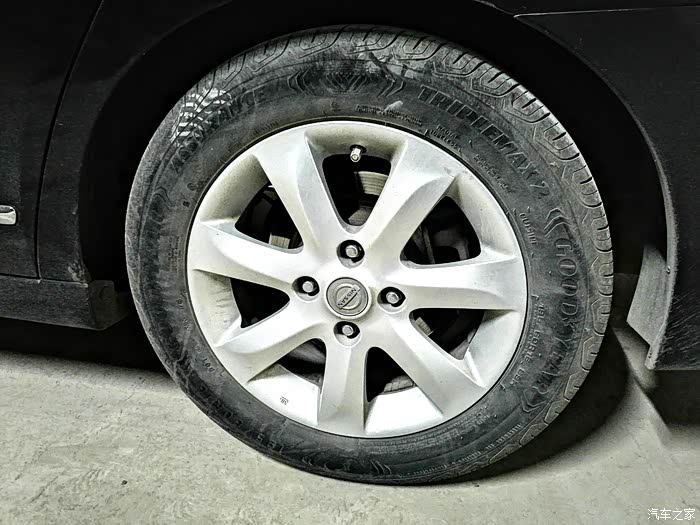 195/60R16是经典轩逸的标配。检查了一下,前轮有些缺气啦。。。。。。