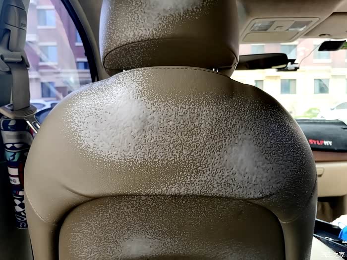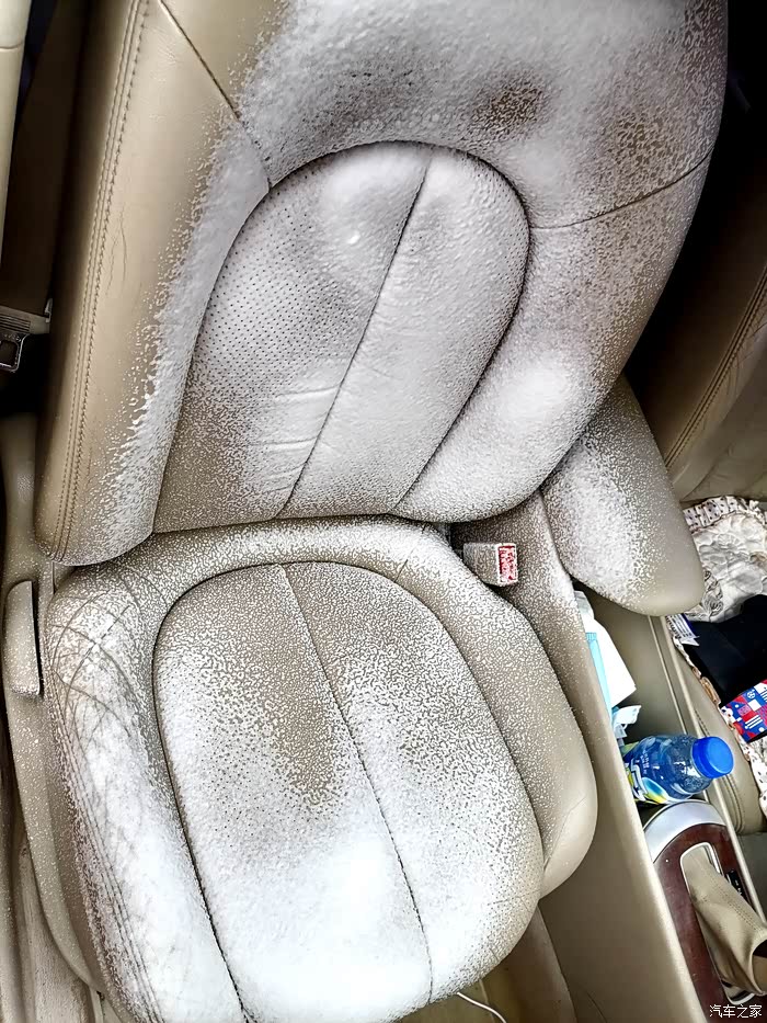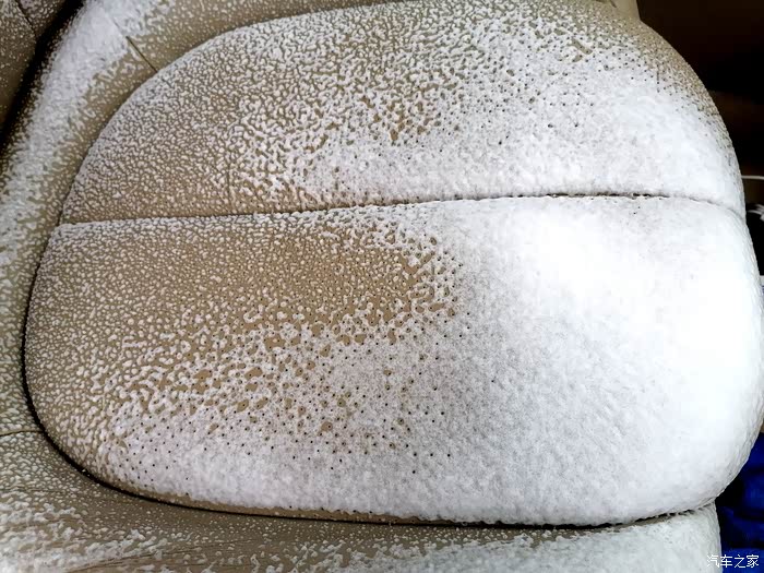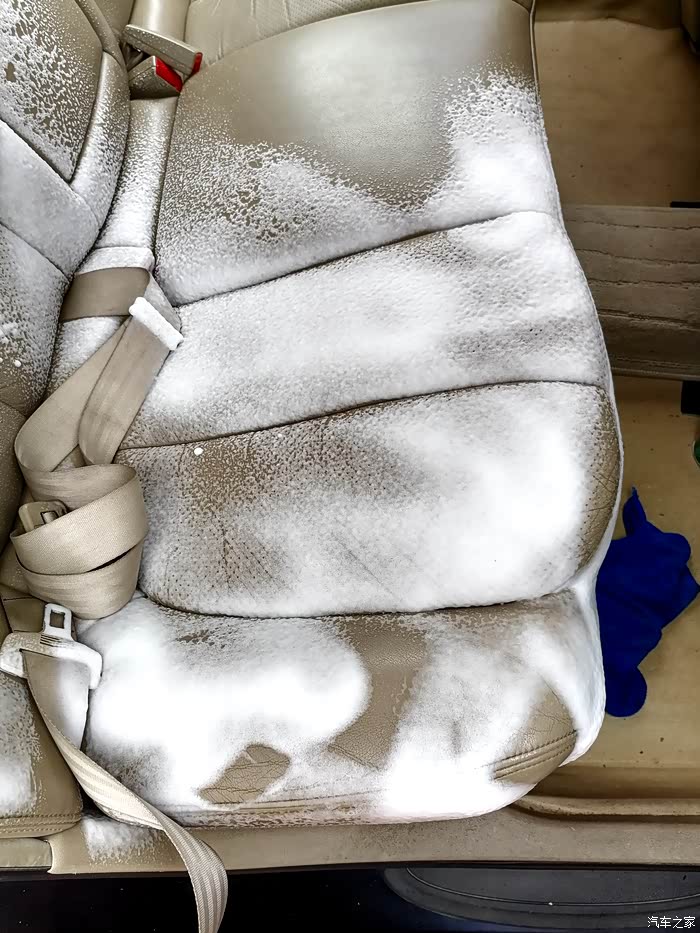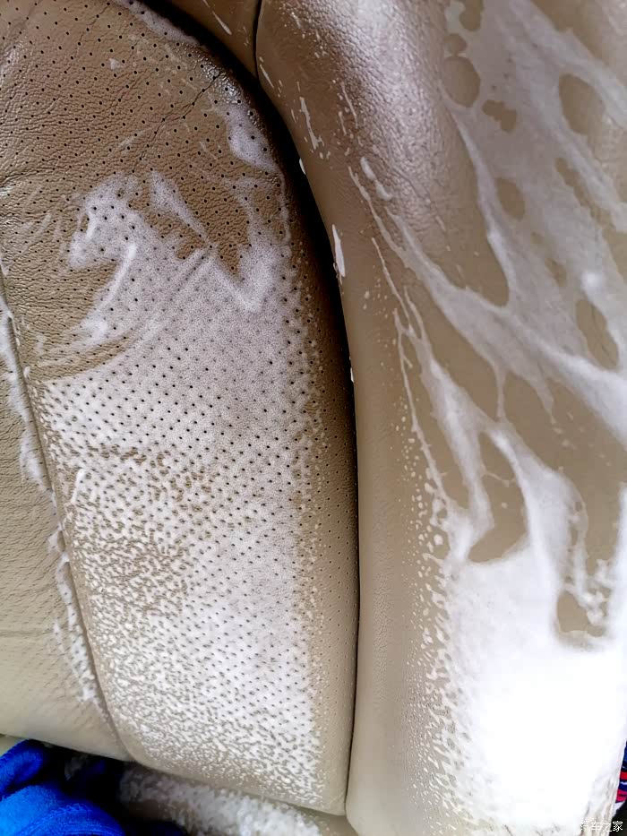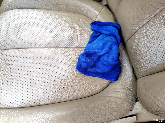 开始清理后排座椅的真皮,这是最难打扫的,因为经常拉货,脏的挺厉害,只有一遍遍的喷剂,一遍遍的擦拭才行。。。。。。