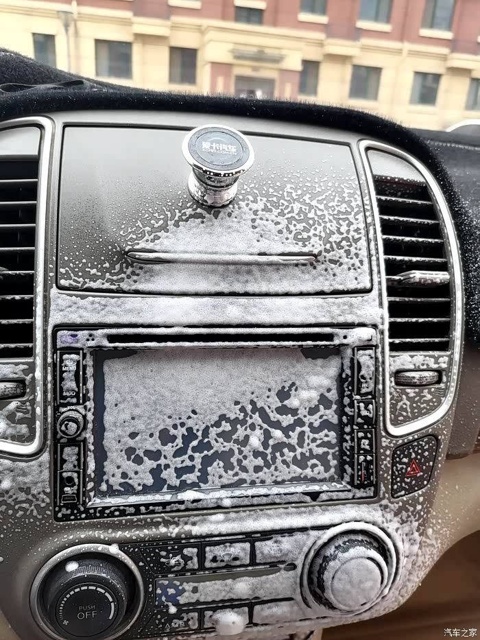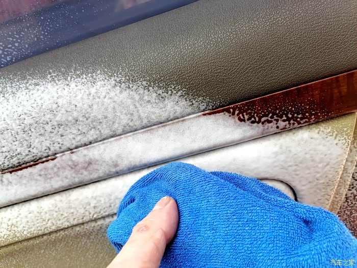 仪表盘也喷一些,等会儿用毛巾擦一下,这个地方一定要轻柔,以防损坏表面。