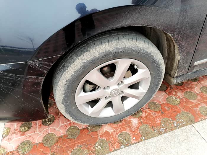 先看看憨憨的大脚丫子,固特异安乘系列的。用了三年了,一直在郊区跑车,道路小石子和泥沙多,有临近雨季,天天跑在雨水路面上,泥灰也是裹满了轮胎,这一路陪伴走来看来这小飞足还是值得考验的。而且安全系数挺高,还是值得朋友们拥有。