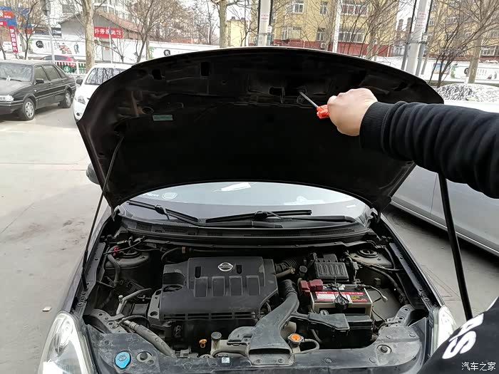 首先打开发动机舱,满眼的灰尘啊,太脏了。