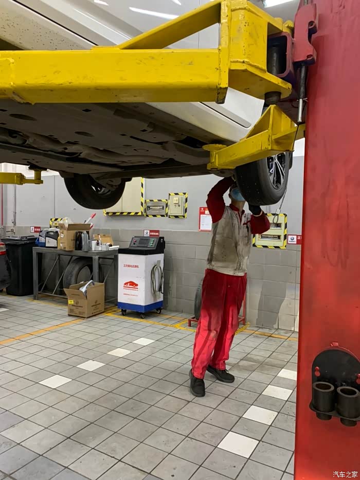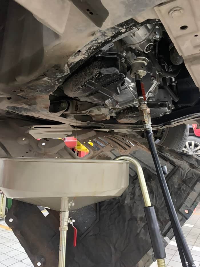 上次保养是看着直接用容器接着废弃机油,这次是用上了管子,不太明白,还是术业有专攻。