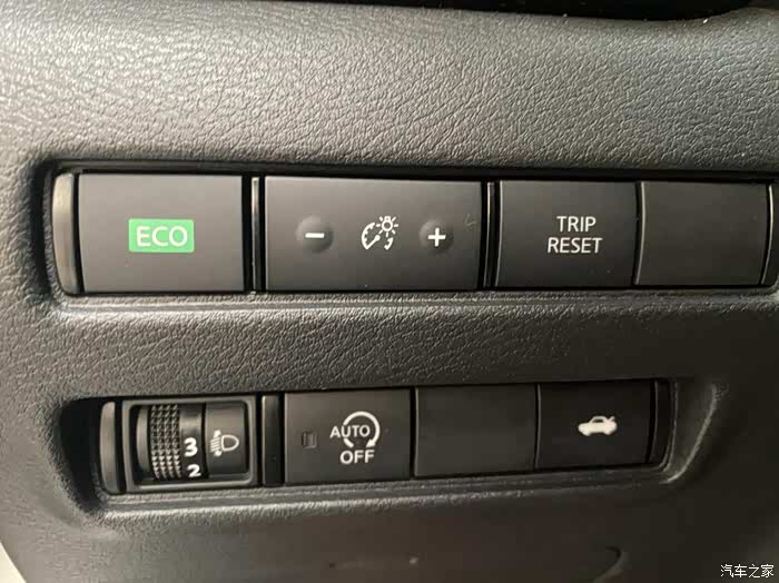 方向盘握起来扎实,多功能按键也是方便实用。底下的功能键也挺丰富的,大灯自己可以调整,还有ECO、自动启停等经济省油操作。