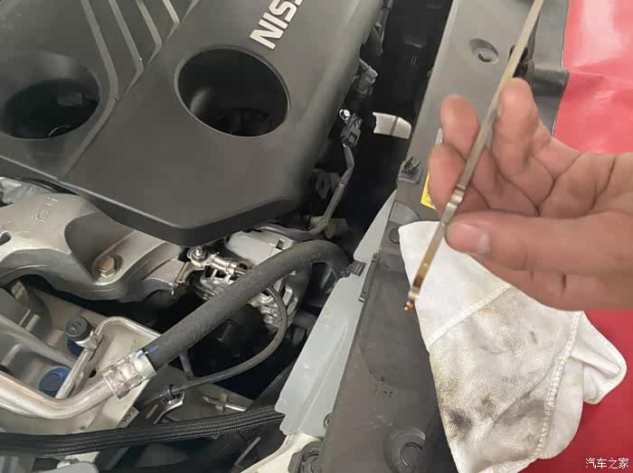 检测机油量的标准动作,不过听说熄火十分钟之后检测机油量才是比较准的。