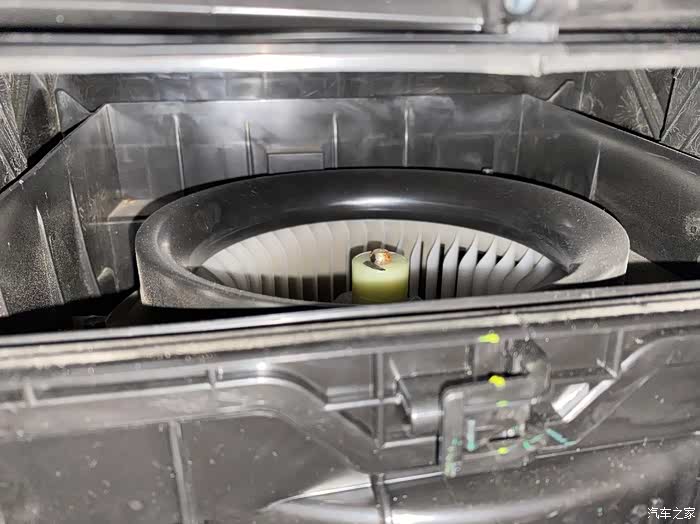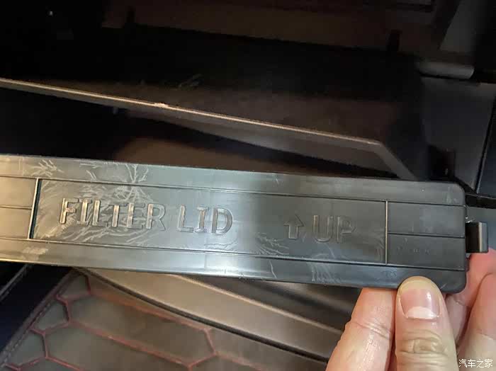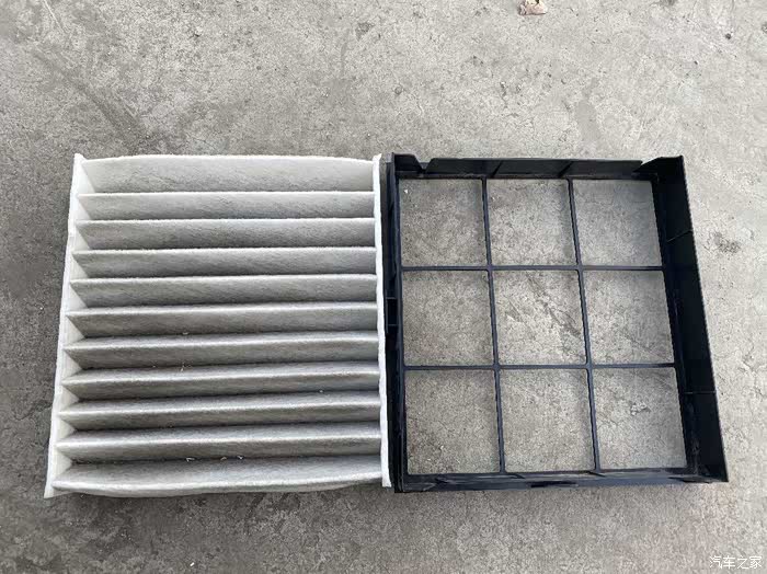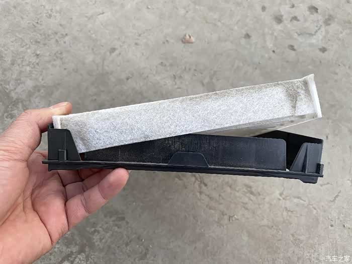 空调滤芯这时候就可以拿出来,注意空调滤芯和支架是分开的,所以一定要弄准方向和位置。