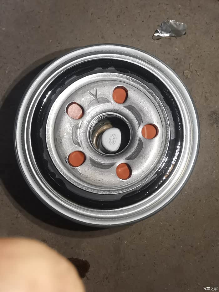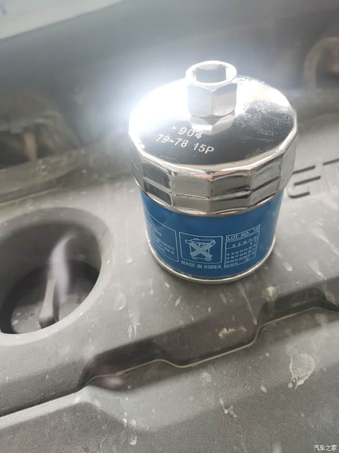 前面大的是滤杯,后面是放机油螺丝,由于车下面空间不是很充裕,不像在修理店升降机那样,手上有机油。工作时的照片不给大家详拍了