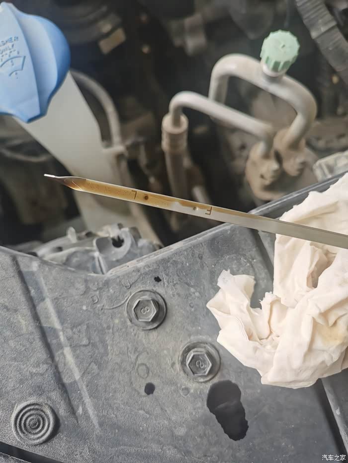 一桶油全部加进去,着车几分钟,看下油尺刚刚好,此次保养完成,关键不及4s四分之一的价格。成就满满啊