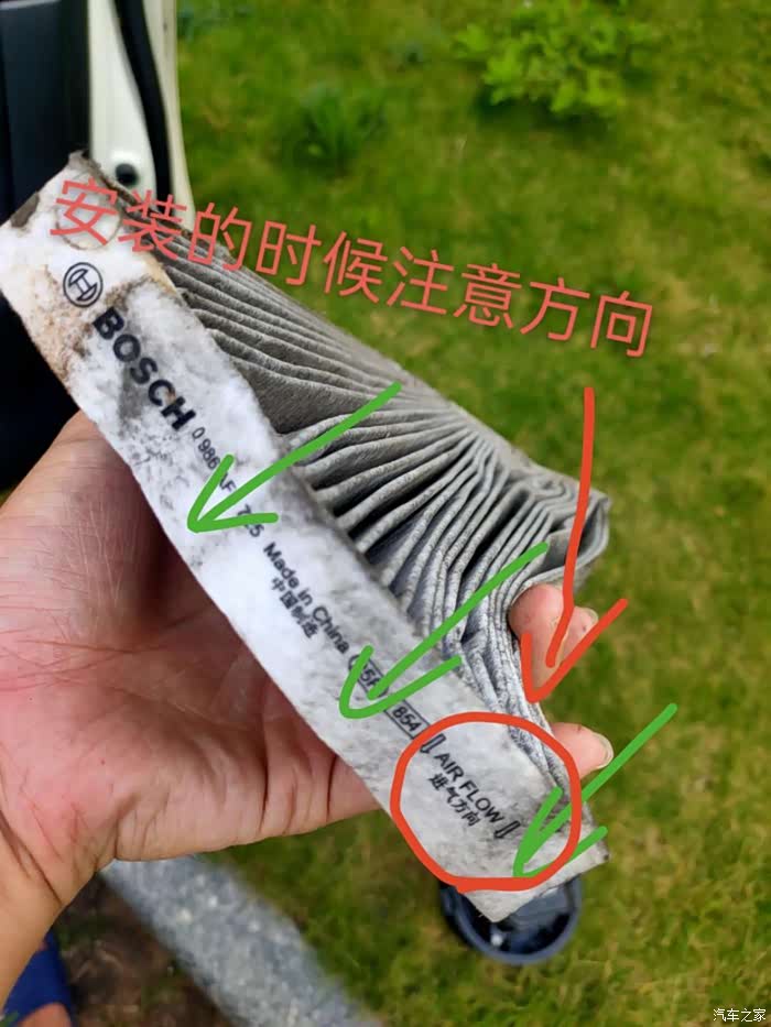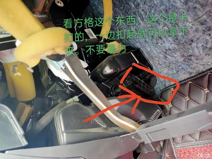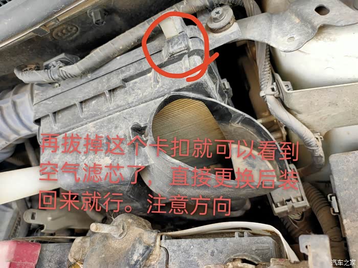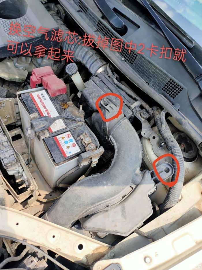 ④最后更换空气滤芯【空气滤芯和异味无关的,是发动机空气入口,定时更换就行】:位置在车头电池右上方