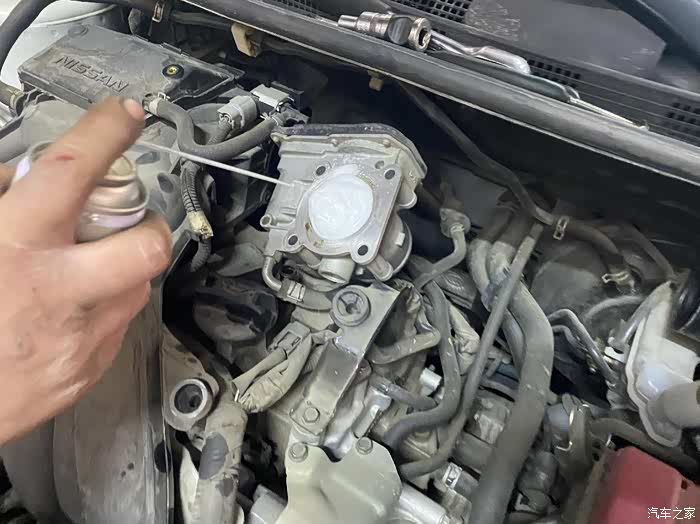 清洗之前是需要在节气门端喷上一层清洗剂,也算是叫去污剂吧。