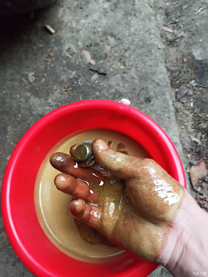然后用24号的梅花扳手把放油螺丝扭开放油<下面不好拍照,没有拍到放油螺丝。请参考论坛>开始放油