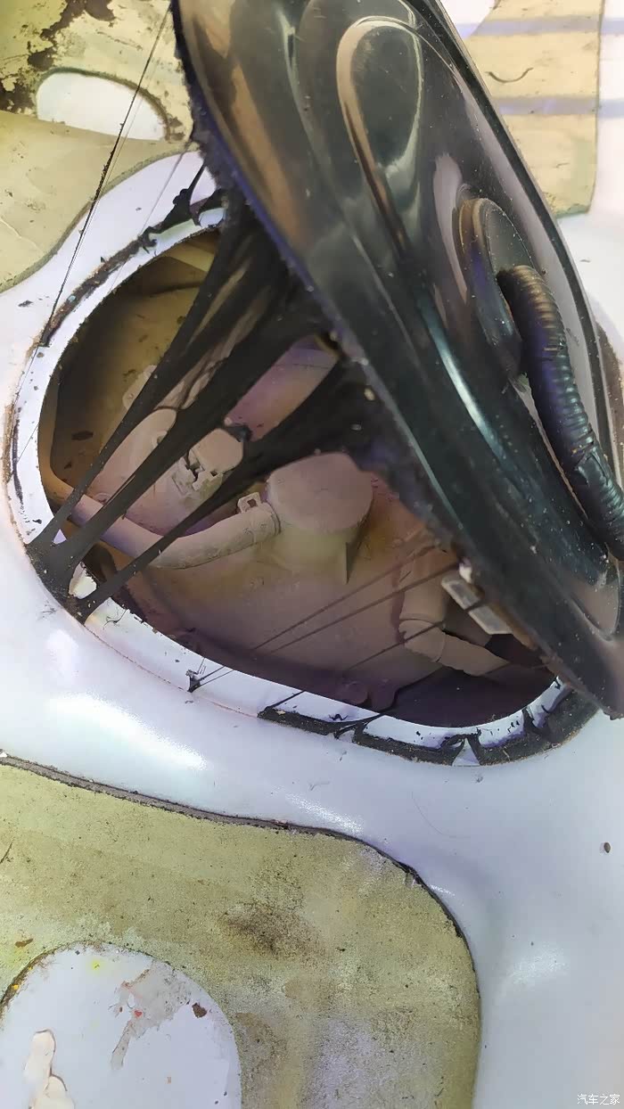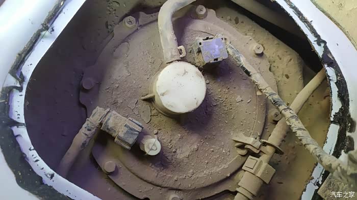 里面是和底盘相通的,所以尘土很多,可以拿个毛刷,用水冲洗干净,脏水会顺着油箱流到地面。