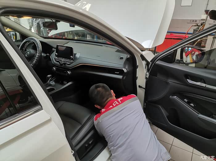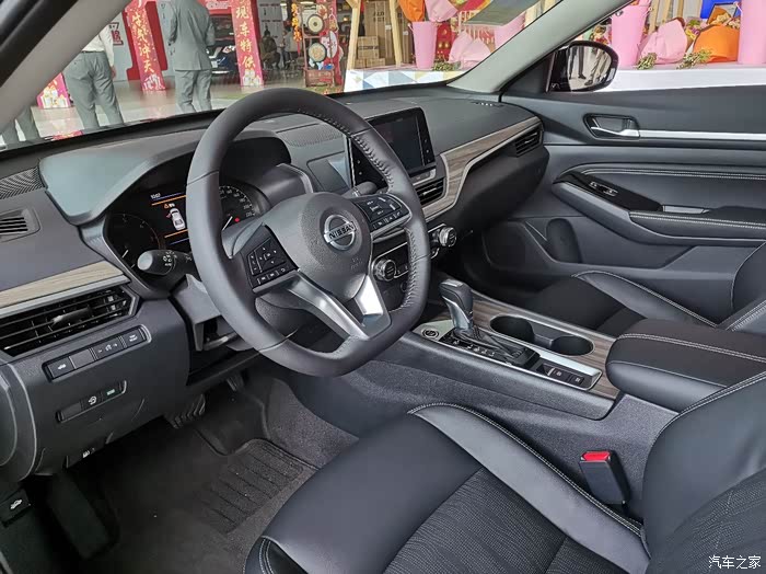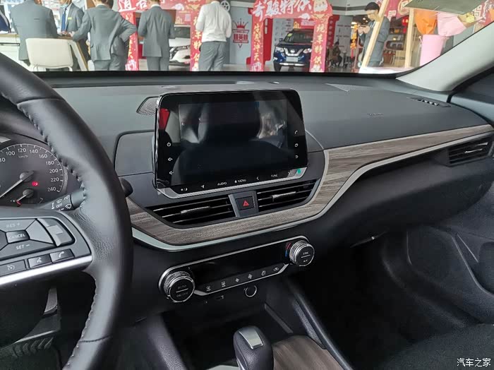 顺便看下最新款的天籁。果然内饰改了。中控面板和前面仪表台加了仿木纹的装饰,比我这台旧款的素色好看了不少。