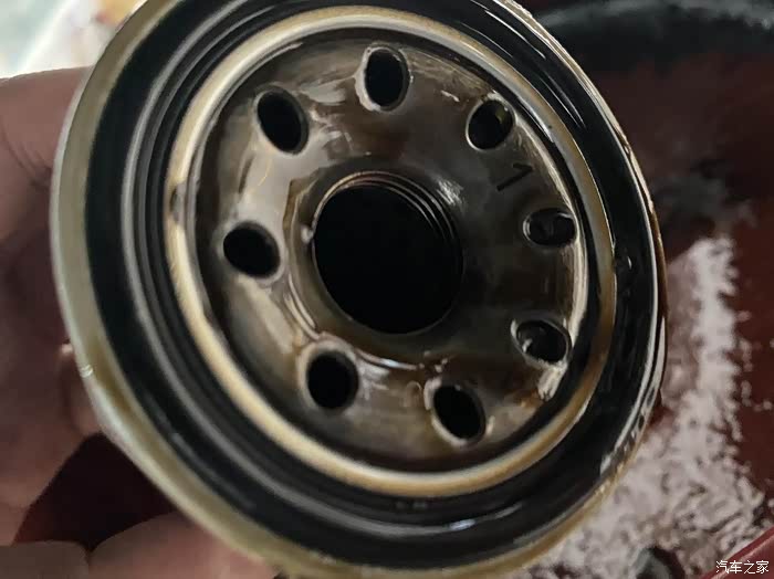 机油滤芯内部看着机油颜色真的是好黑呀。