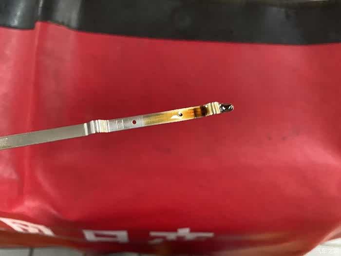 最后,检查机油量,这个也很好看,位置一般在两个刻度中间往上一点就可以。