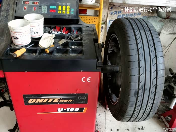 随意,请大家注意在补胎后,尤其是增加了补胎钉这样大块的补胎材料,做动平衡测试是非常有必要的。