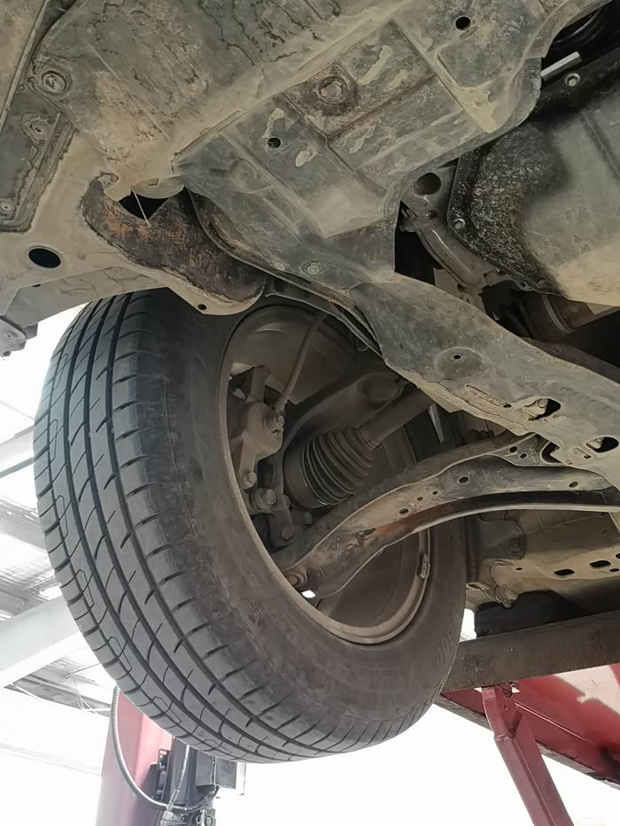 上举升机,检查底盘、轮胎等。