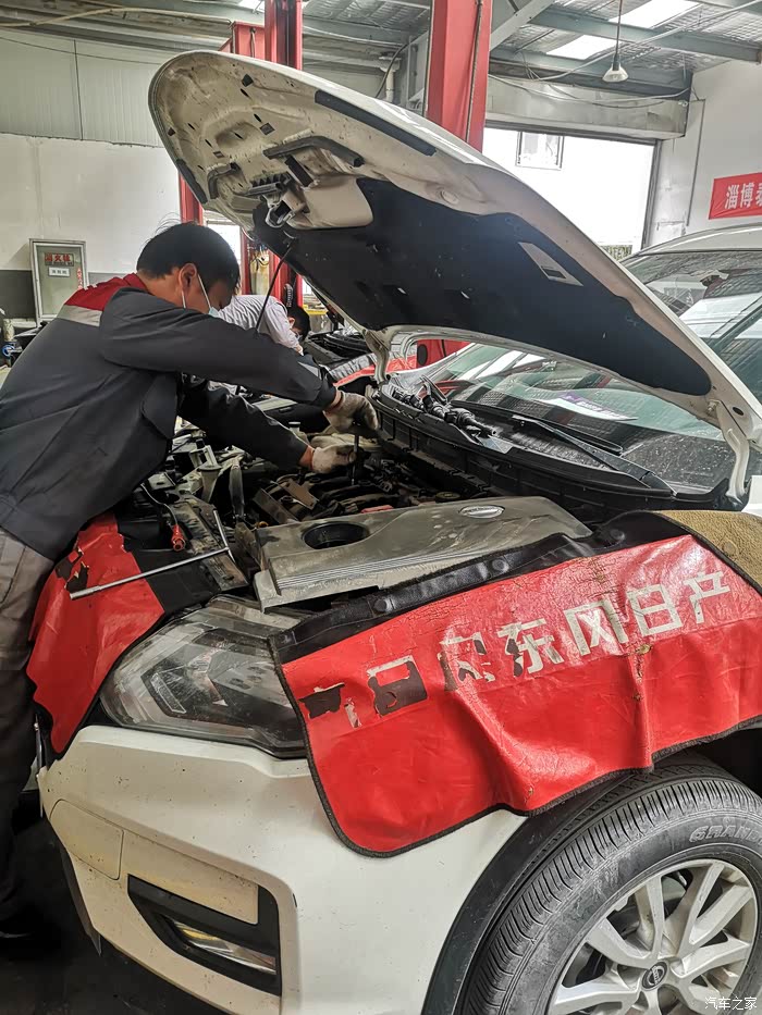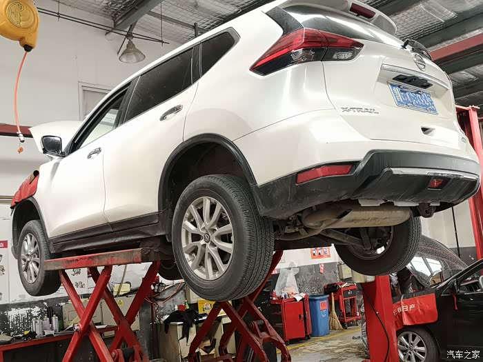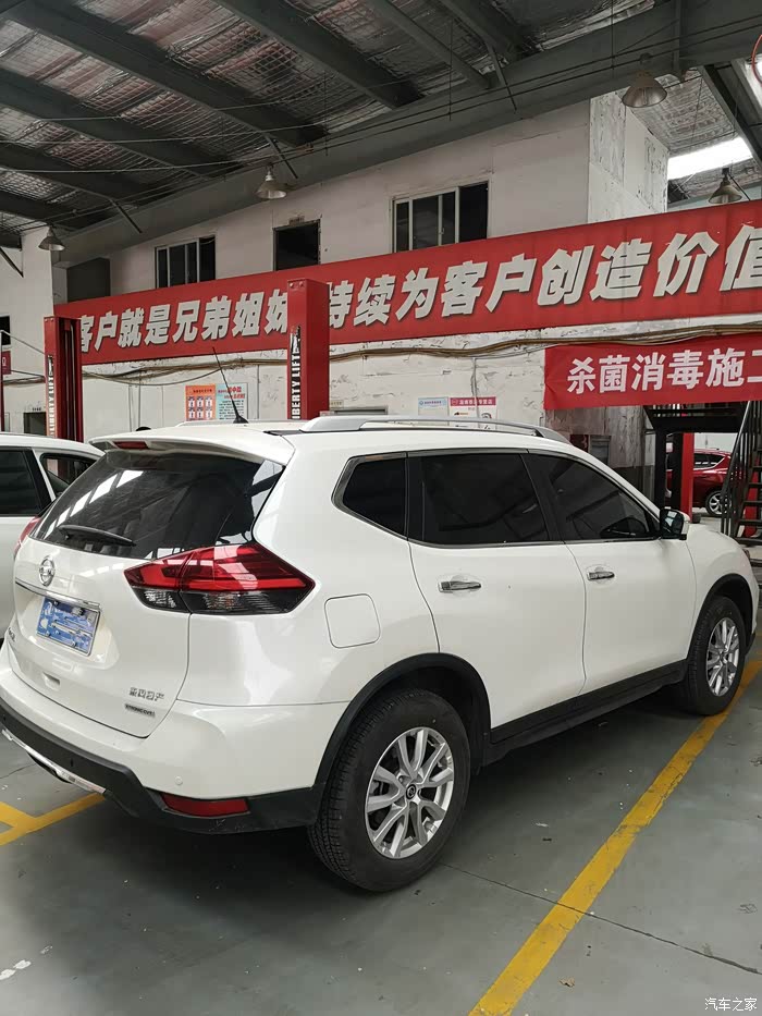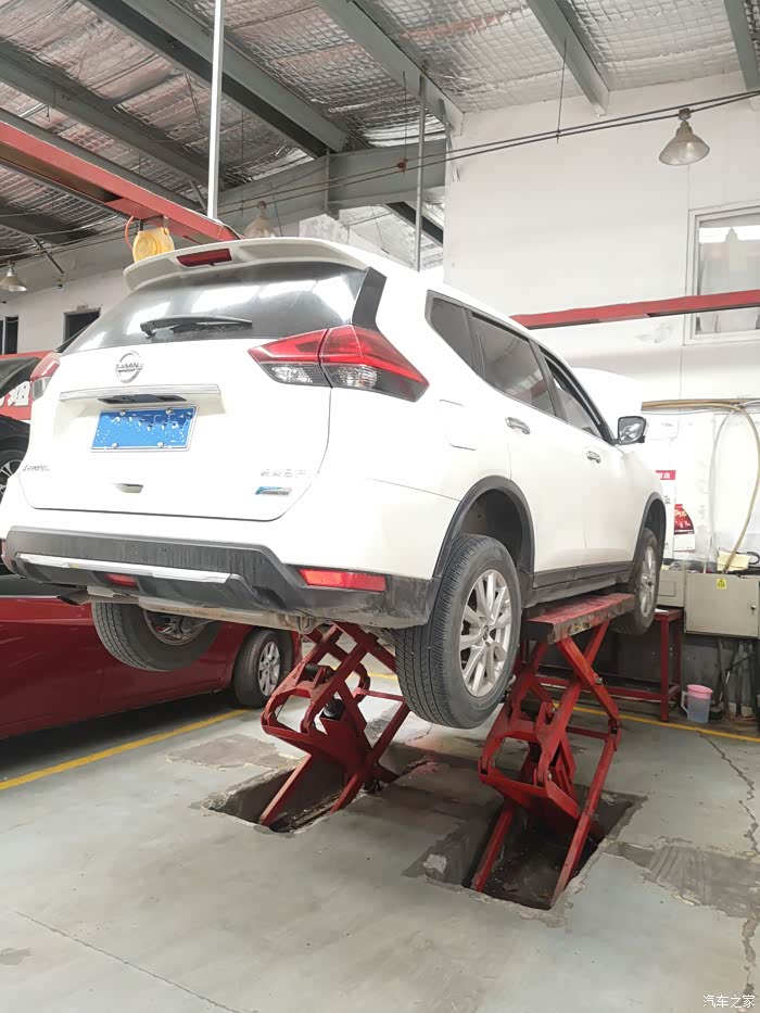 进车间,刚好旁边也有辆奇骏在做着保养,小哥说奇骏保养量特别大,性价比很高的车,听了后心里有点自豪