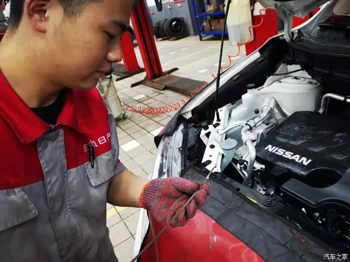 加注完成之后检测机油尺