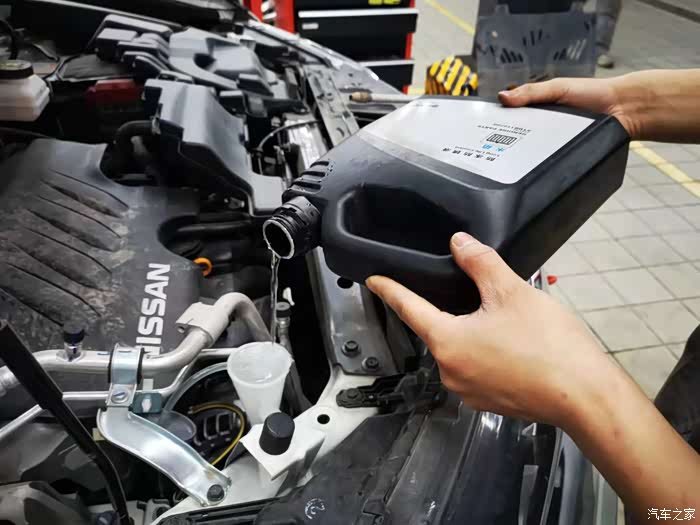 现在将新的机油加注进去