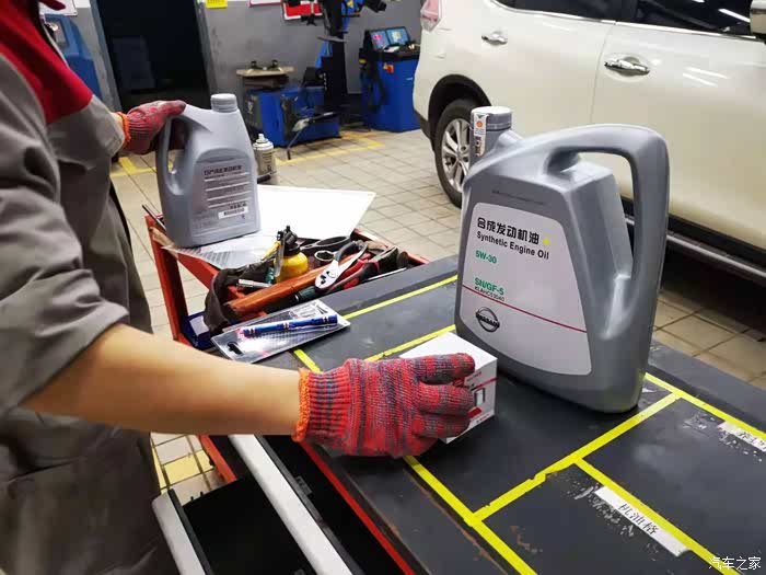这是所要用到的机油和机油滤芯,全部都是原装的,在4S店保养不管是对于师傅们的手艺和经验还是对于这些配件都是很放心的,尽管说价格比外面贵一点,但我也愿意,因为放心