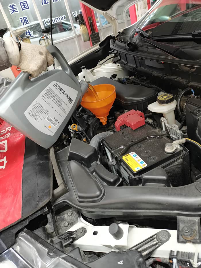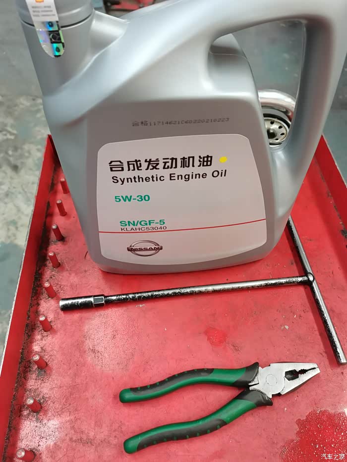 这次保养,自己也找了差价,加了135元(因为是入保险赠送的基础保养),使用了半合成的机油,提提档次,前边一直都是用的是基础矿物油,感觉也可以,看到车友们都用这款半合成的,咱也不差钱了,让他喝点好的吧!原本几个保养师傅都跳槽自己出去干了,来到保养车间一看几个小师傅都是新面孔啊,唉,反正就是换换油也没有太大的技术含量,就让这些新手换吧,自己全程看着就行了。不过通过询问小师傅,一口的普通话,知道他不是本地人,人家也是学习汽车维修的,技术虽没有那么熟练,但是很认真,值得点赞,顺便让他给我更换一下空滤,自己在网上买的“卡卡”,