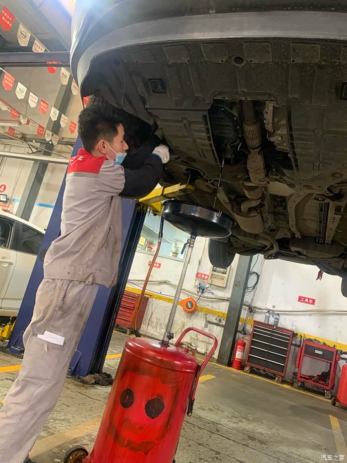 保养的小师傅很年轻,但是看动作很娴熟,估计是个老手了
