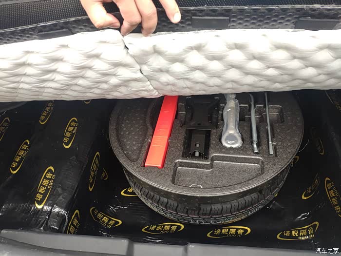 拆开后备箱,只能用毛坯来形容原车的隔音效果