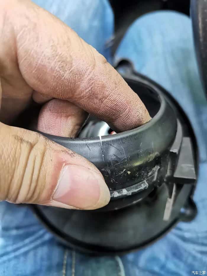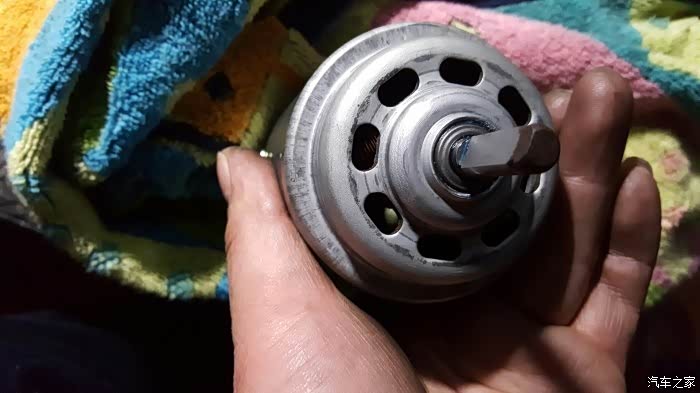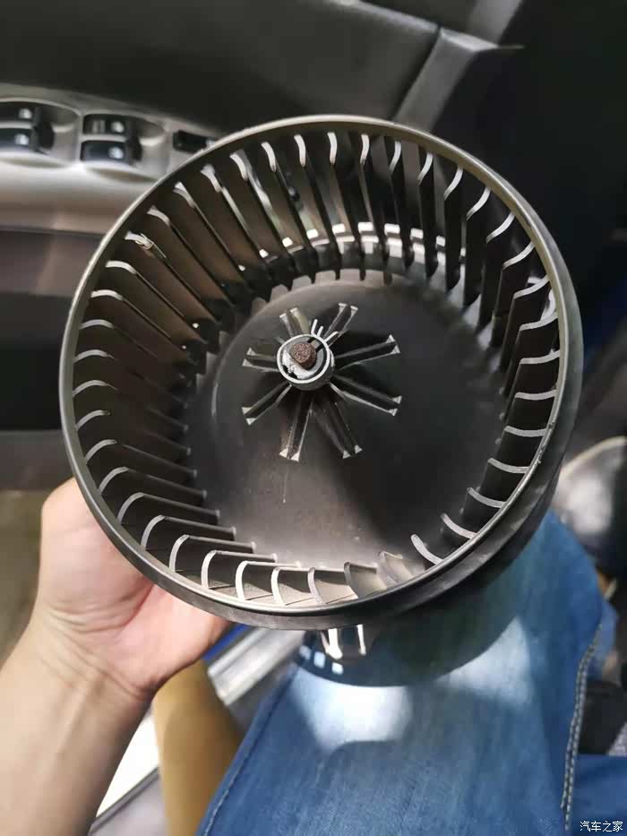 拿掉滤芯就这里边就能看到鼓风机的叶轮,用手转了一下,感觉有点涩,继续拆吧