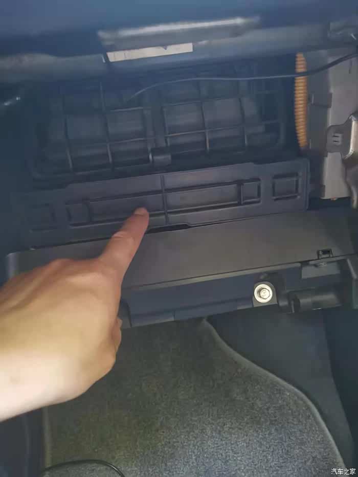 手指的位置是空调滤芯,拿出来看已经很脏了,顺便换上网上买的便宜货