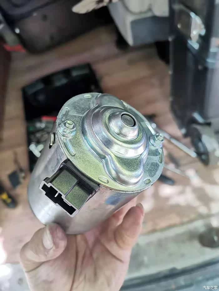 电机拿出来是这样的,上边两颗7个的螺母,拿套筒拧下来,没有套筒用钳子