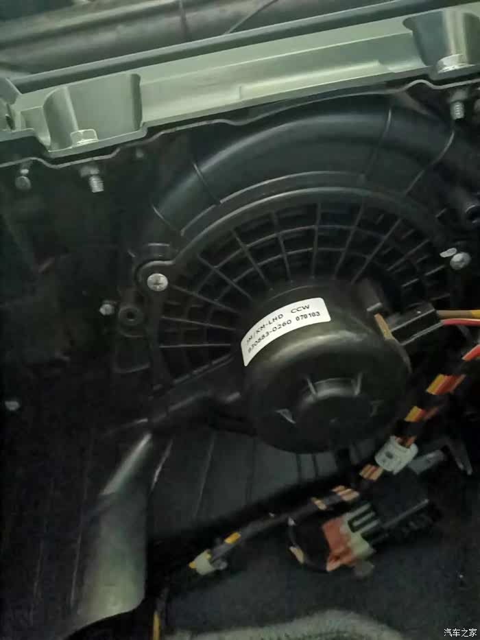 鼓风机螺丝在副驾驶脚底下,钻进去向上看,能看到两颗十字螺丝,按照这种布局后边肯定还有一颗,用手一摸,果然。