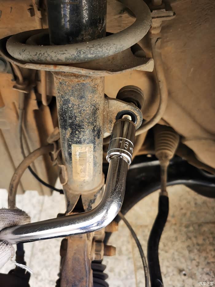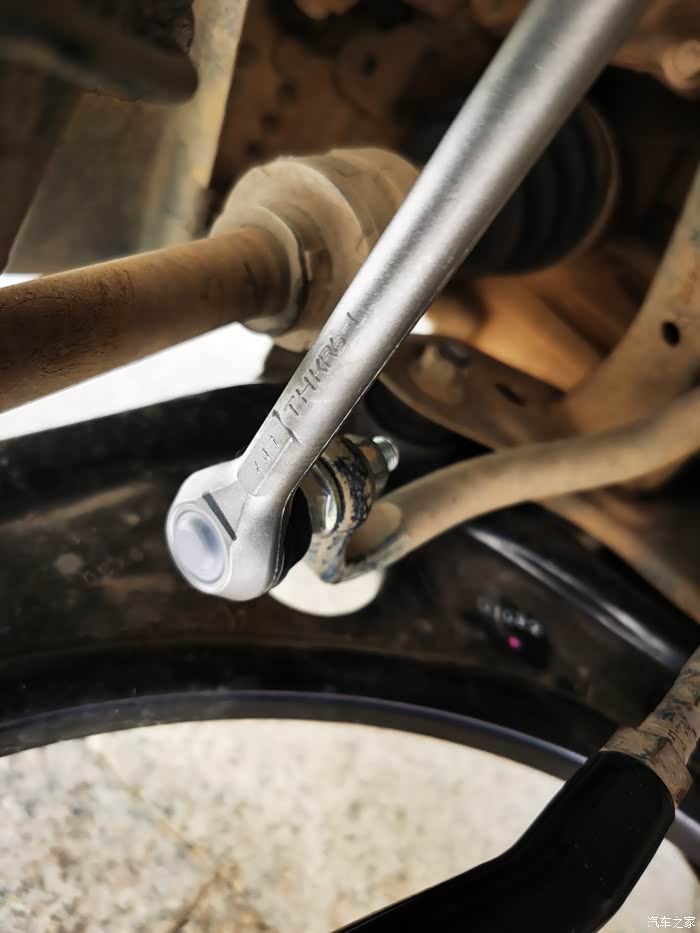 拆右边的时候,发现棘轮扳手可以用,最好配合开口扳手,防止球头跟着转,用这个工具好拆。