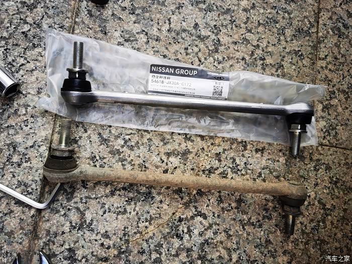 正规名叫:稳定杆连杆,看名字就知道它的作用,是不平路面或者转弯弯度大侧倾的时候起稳定车身的作用,最近换了摆臂和方向机外球头后,车身明显稳定很多了,过弯时车身很扎实,不像之前松散了,所以我干脆把这个也换了,试试效果怎样,配件也是去4s拿的,99一根,价格不算贵,买了自己动手更换了,不难更换,过程如下。注:更换要平衡杆球头后,不需要做四轮定位,它不影响四轮数据。更换后,过不平小的坑洼路段,效果很好,不会那么震了。