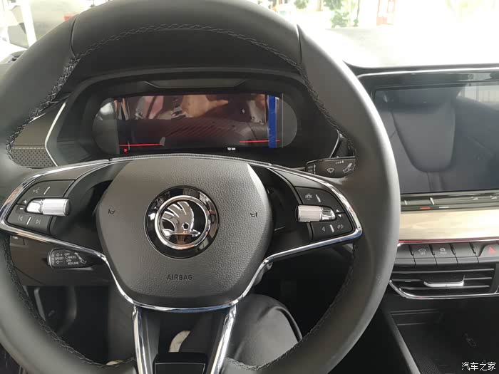很运动的方向盘,有点像标志的,前排的按钮也像标志。