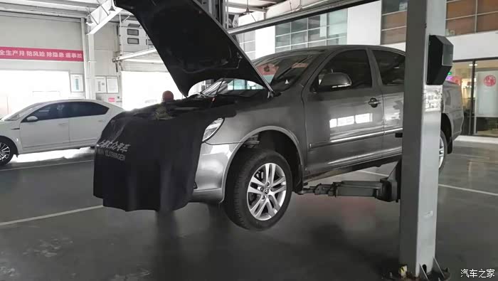 车辆进入维修保养工位,打开机油注入口的盖子,并将旧机滤拧松一点,将车辆升起2