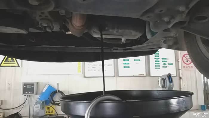 旧机油放完后,安装好发动机下护板,将车辆从升降机上放下,折下旧机油滤清器并安装好新的机滤,注入新机油。还是半合成的机油。