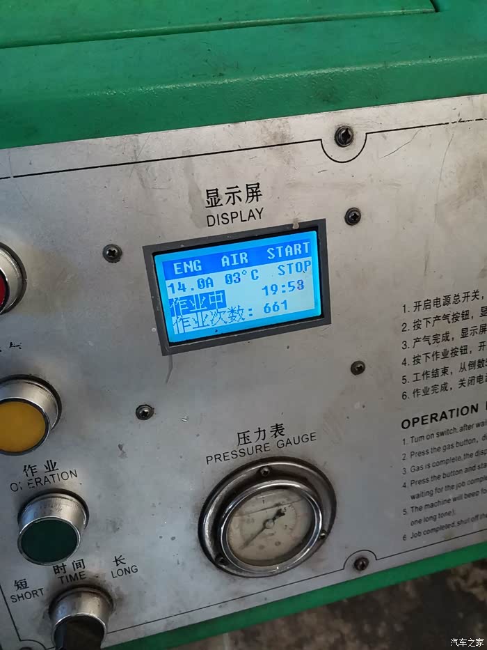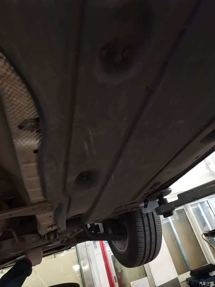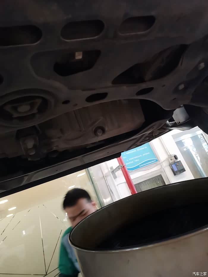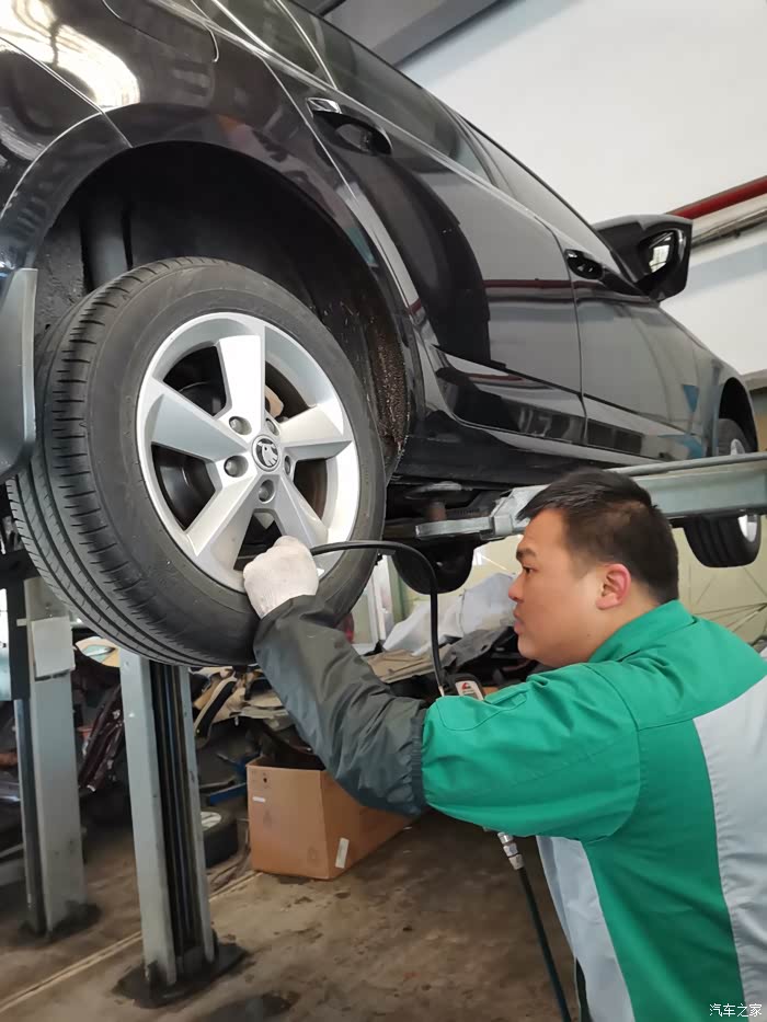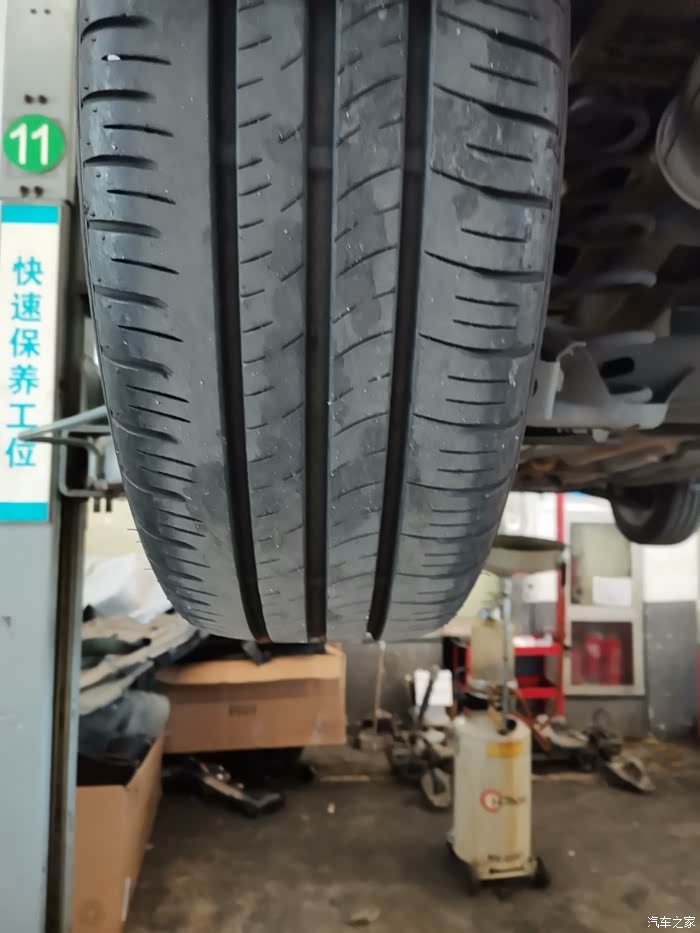 放机油的同时,保养的小伙开始检查胎压,胎压2.4到2.5