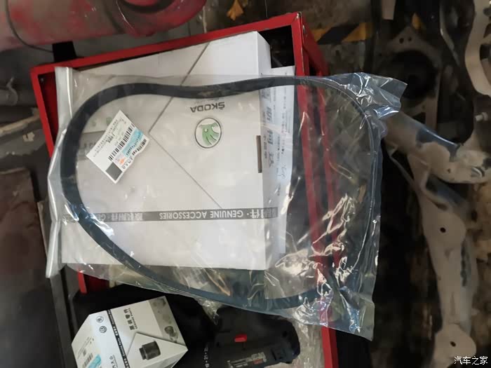 这次因为我的车差不多95000公里,要换一根发动机皮带。所以领了一根全新的发动机皮带。