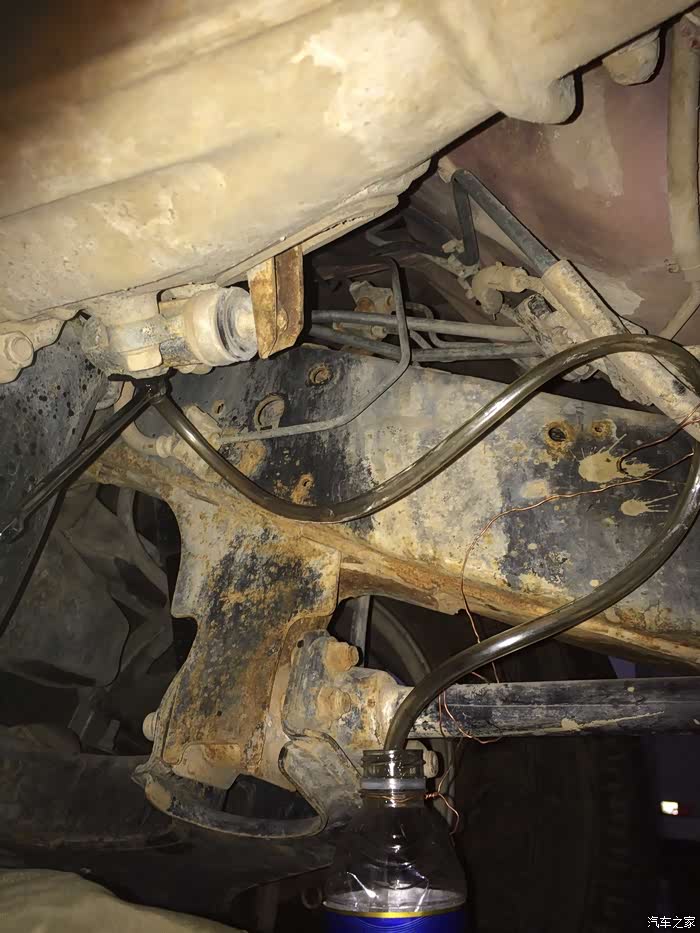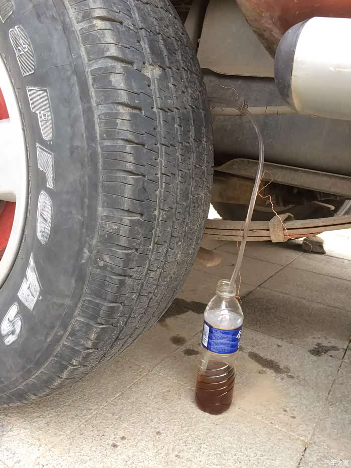 后轮放油孔位置不好操作,这里的技巧是千斤顶把后轮顶起一点,脑袋可以伸进轮眉,从轮眉位置接管,拧螺丝比较方便,不用钻车底。