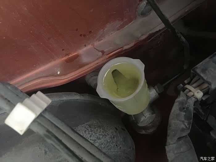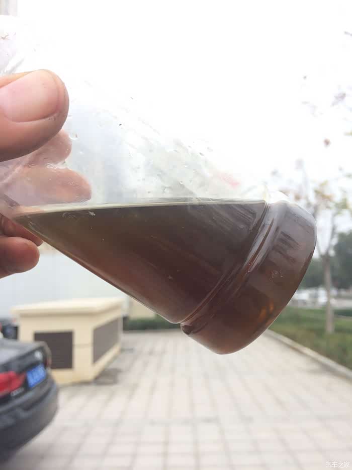 放出的旧离合油,铁锈色。