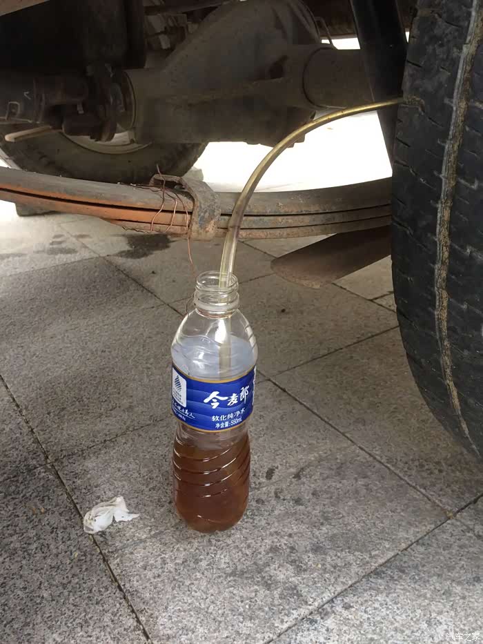 铁丝固定瓶子,胶管连接放油孔,10号扳手,预备放油