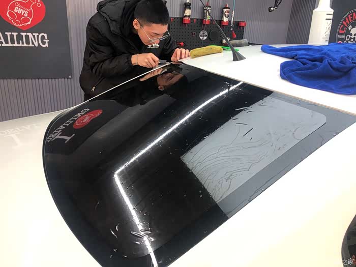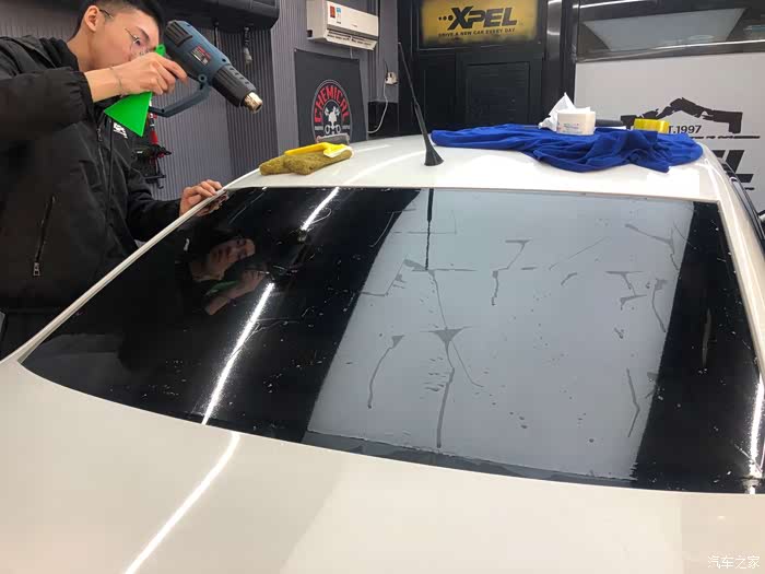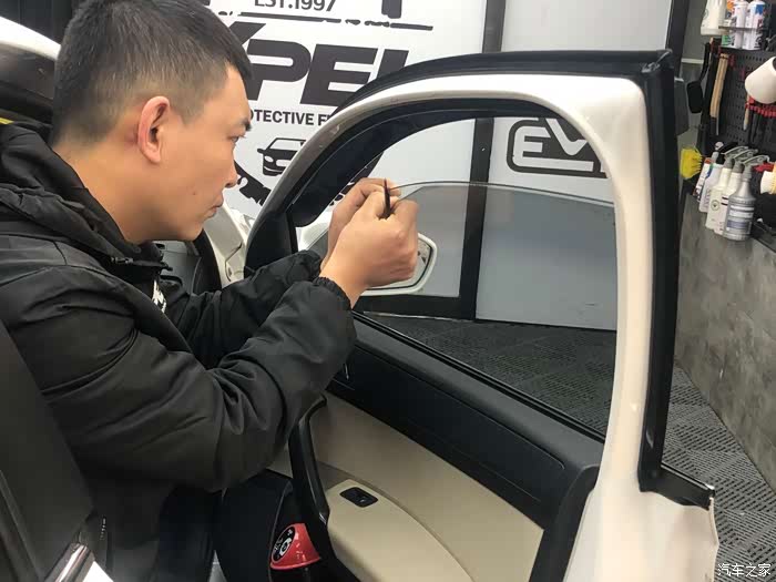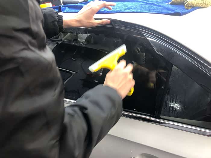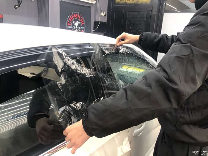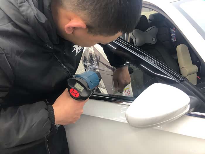总结:全车贴完膜后,车主要坐在车内观察颜色是否均匀,是否有气泡,沙砾是否过多,并从各种角度向外看车膜是否影响视线。还可将车窗降下,查看切割膜片的刀工是否整齐圆润,所留工艺边是否尺寸相近等。另外一周内不能开窗,这次贴膜还是很完美的。