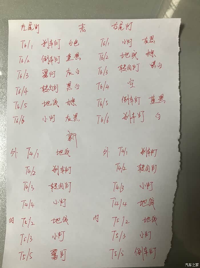 新款尾灯从1个改成两个,先整理一份尾灯插头的定义。